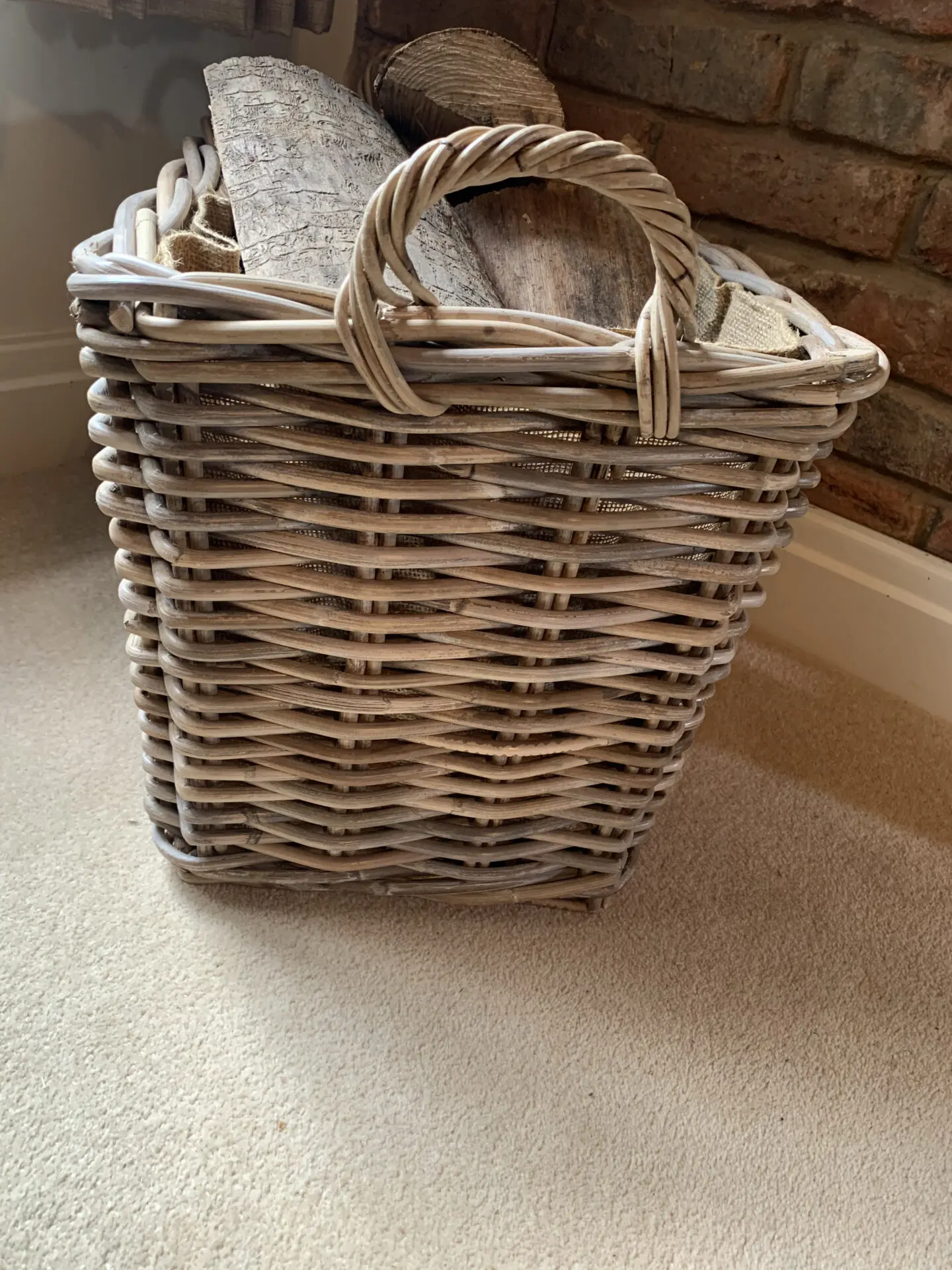 Another variation of our Hessian-lined range. This basket is the perfect fit for an inglenook fireplace. It offers a sturdy and stylish solution for log storage.