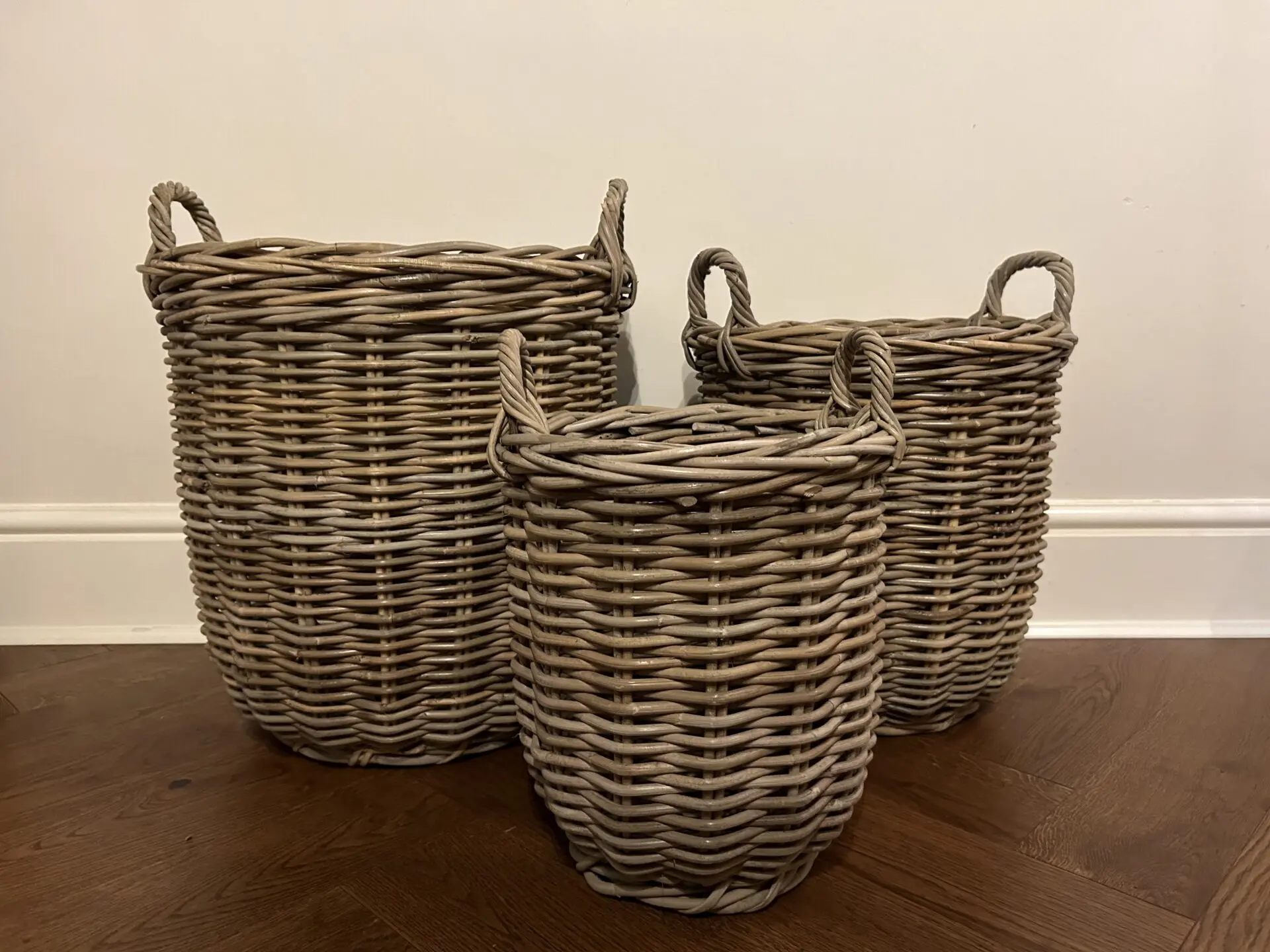 Due to the handmade nature of our baskets, the measurements we provide are just a guide, so please allow for a difference. Shades may also vary from the images shown, as our products are made from natural materials. Please allow an additional 8-10cm height for the handles.