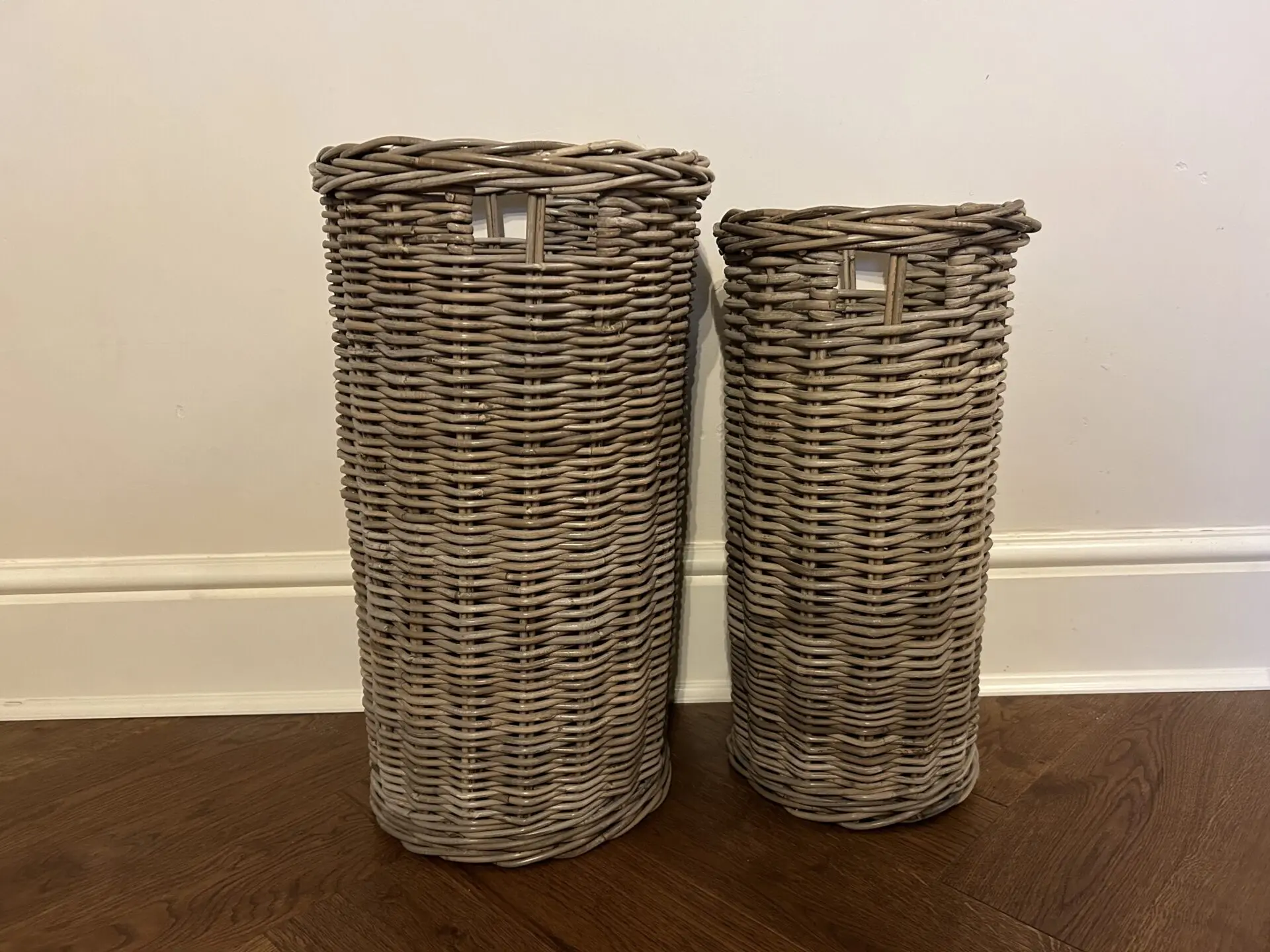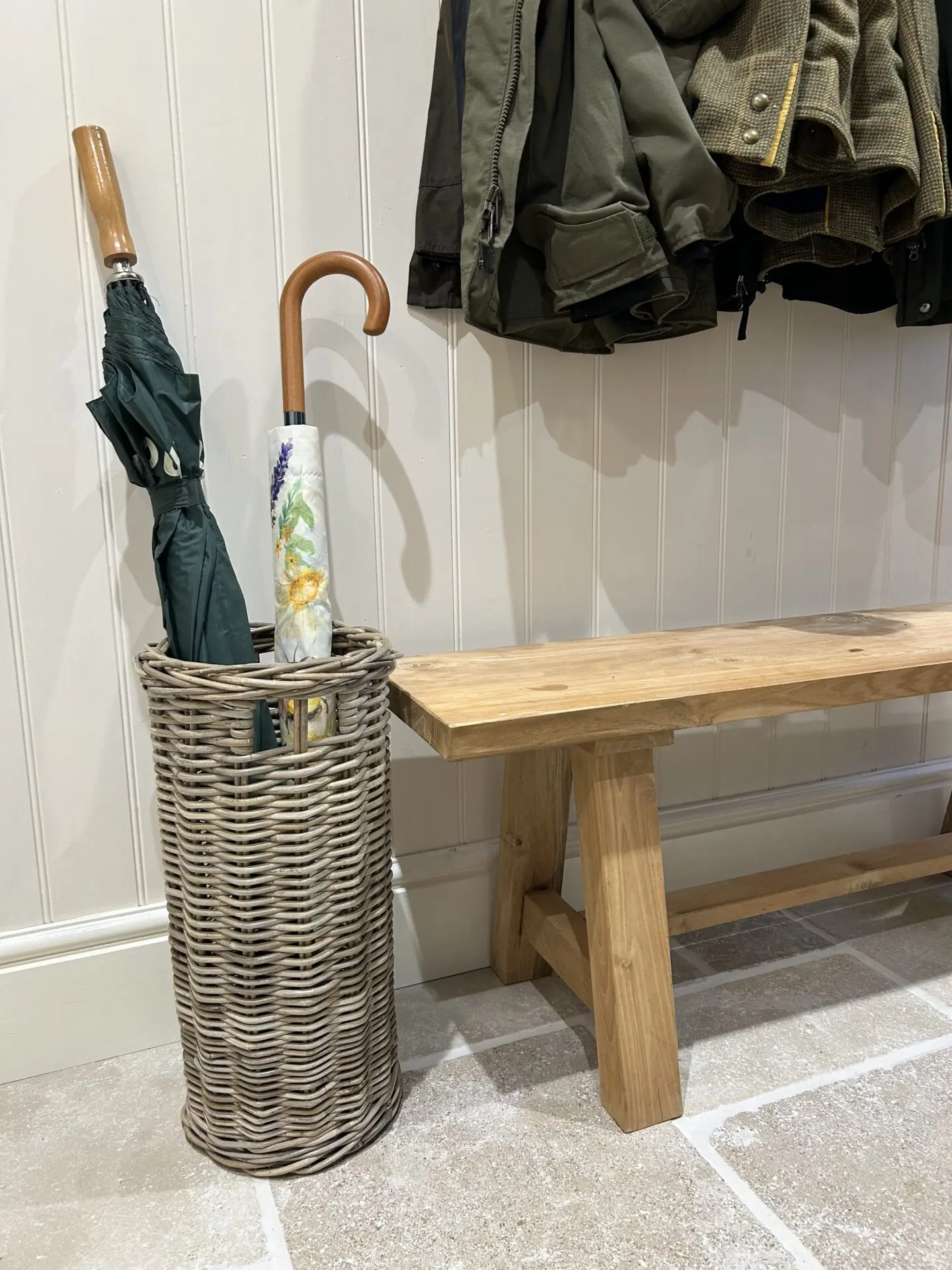 A strong and sturdy woven basket is a stylish and practical solution for Umbrellas and other household items. The handles allow for ease of movement. These baskets are also super handy for storage around the home. The Metal interior base allows for excess water to be held without damaging the Rattan.