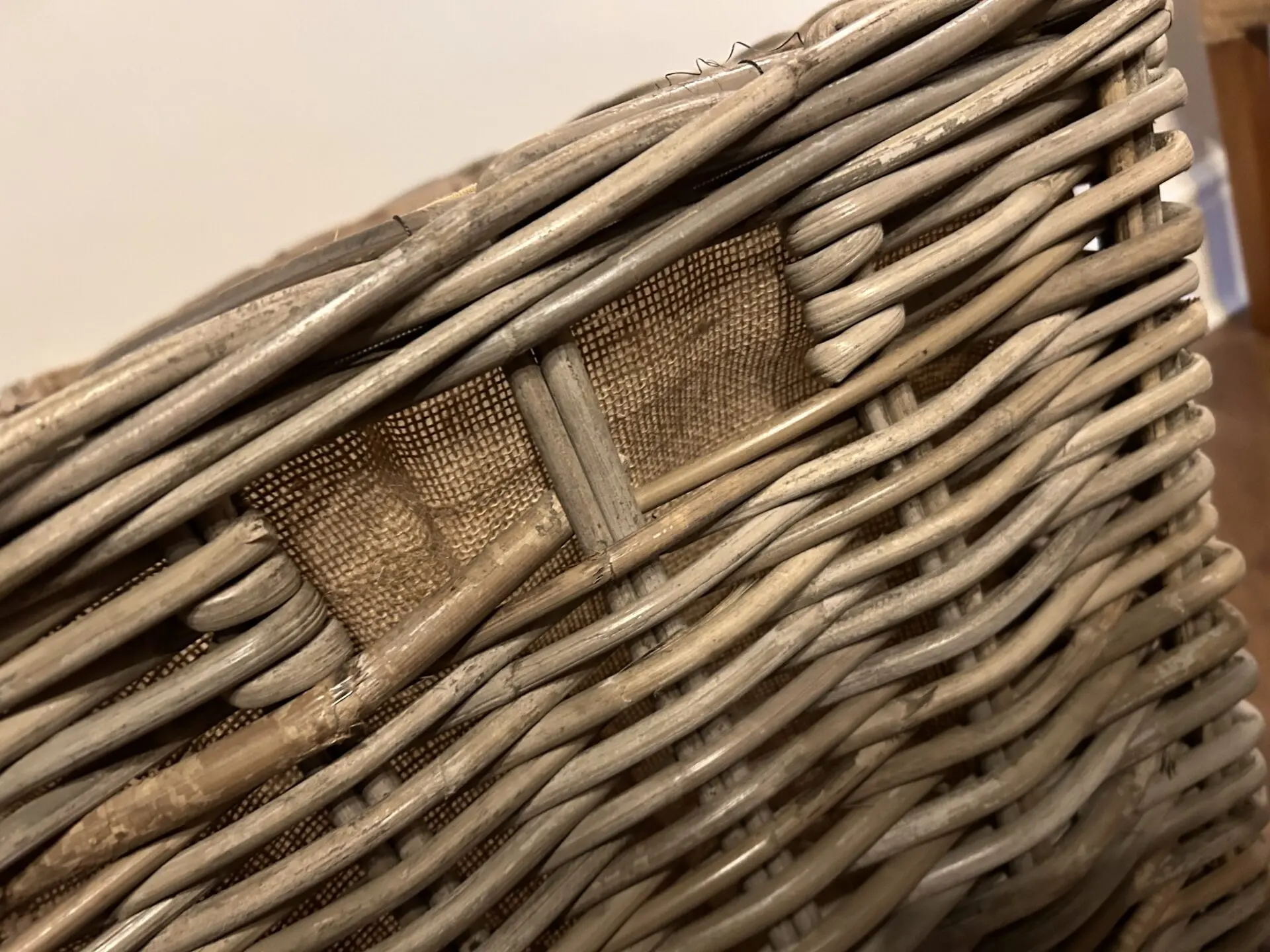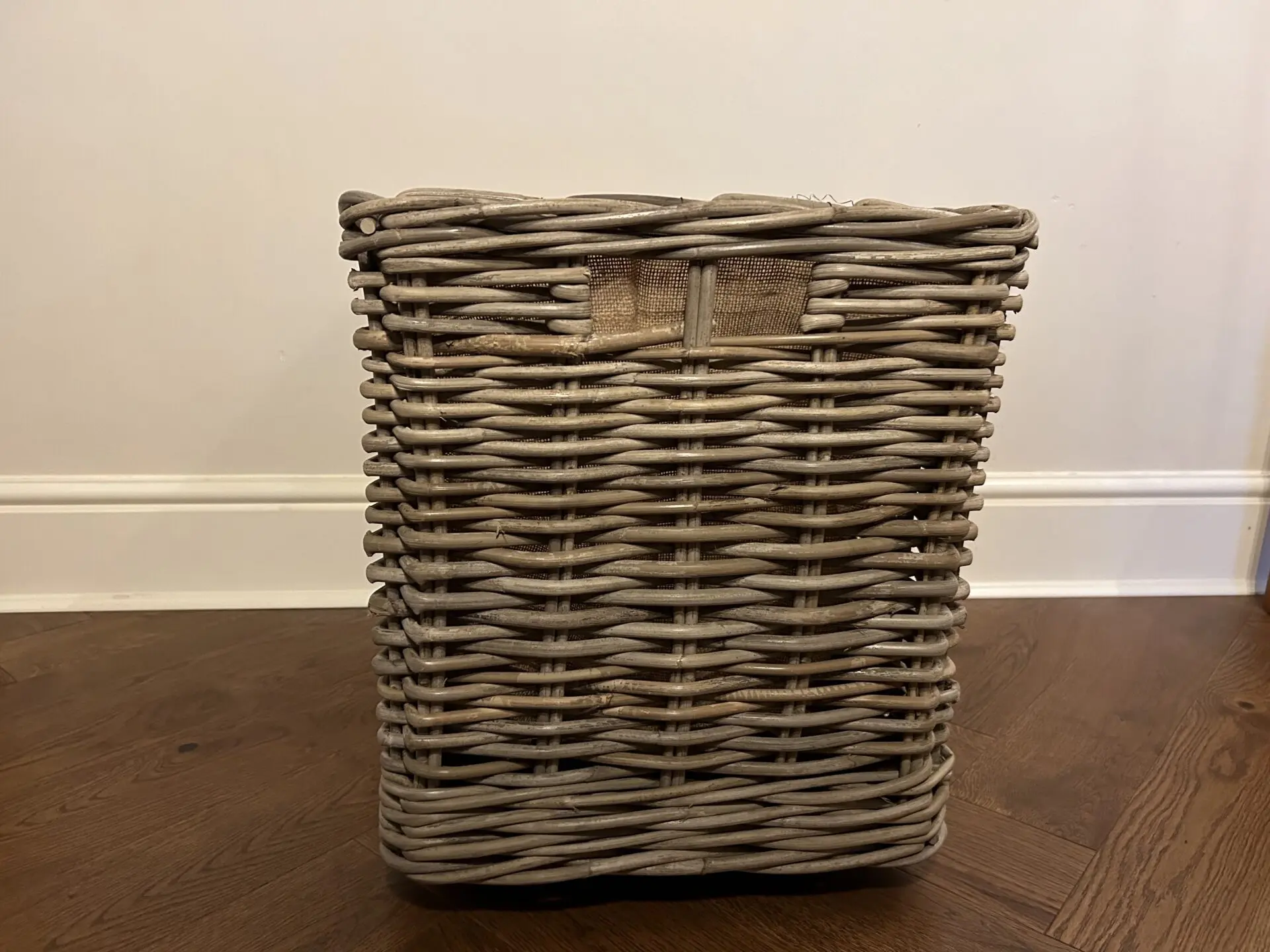 Natural Rattan Wheeled Log Basket with Hessian Lining